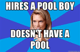 POOL BOY: Si, senorita. (picks her up)