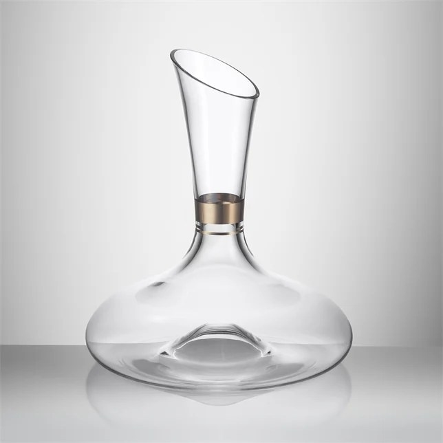 She holds out the sleek glass decanter for his inspection, and his native wariness returns.