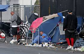 “Okay,” the man says. “These will come in handy when I have friends over to my place,” he says, nodding at a jury-rigged dwelling made of discarded appliance boxes.